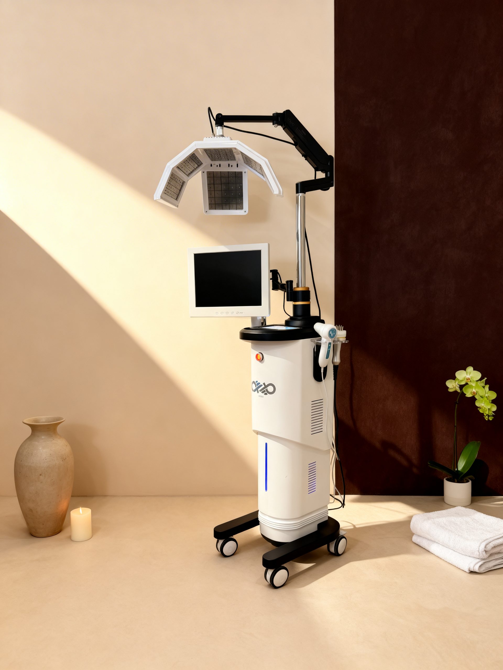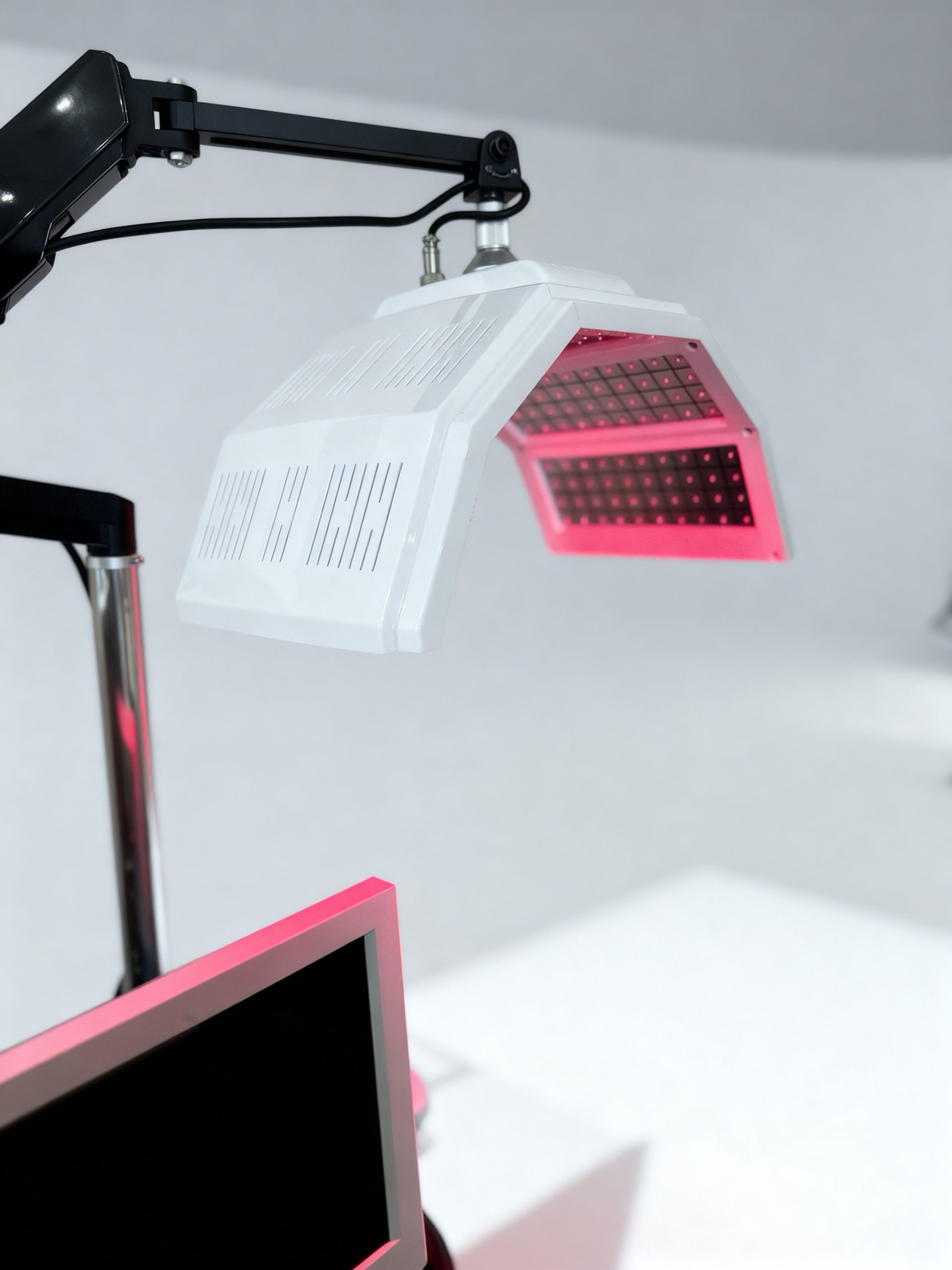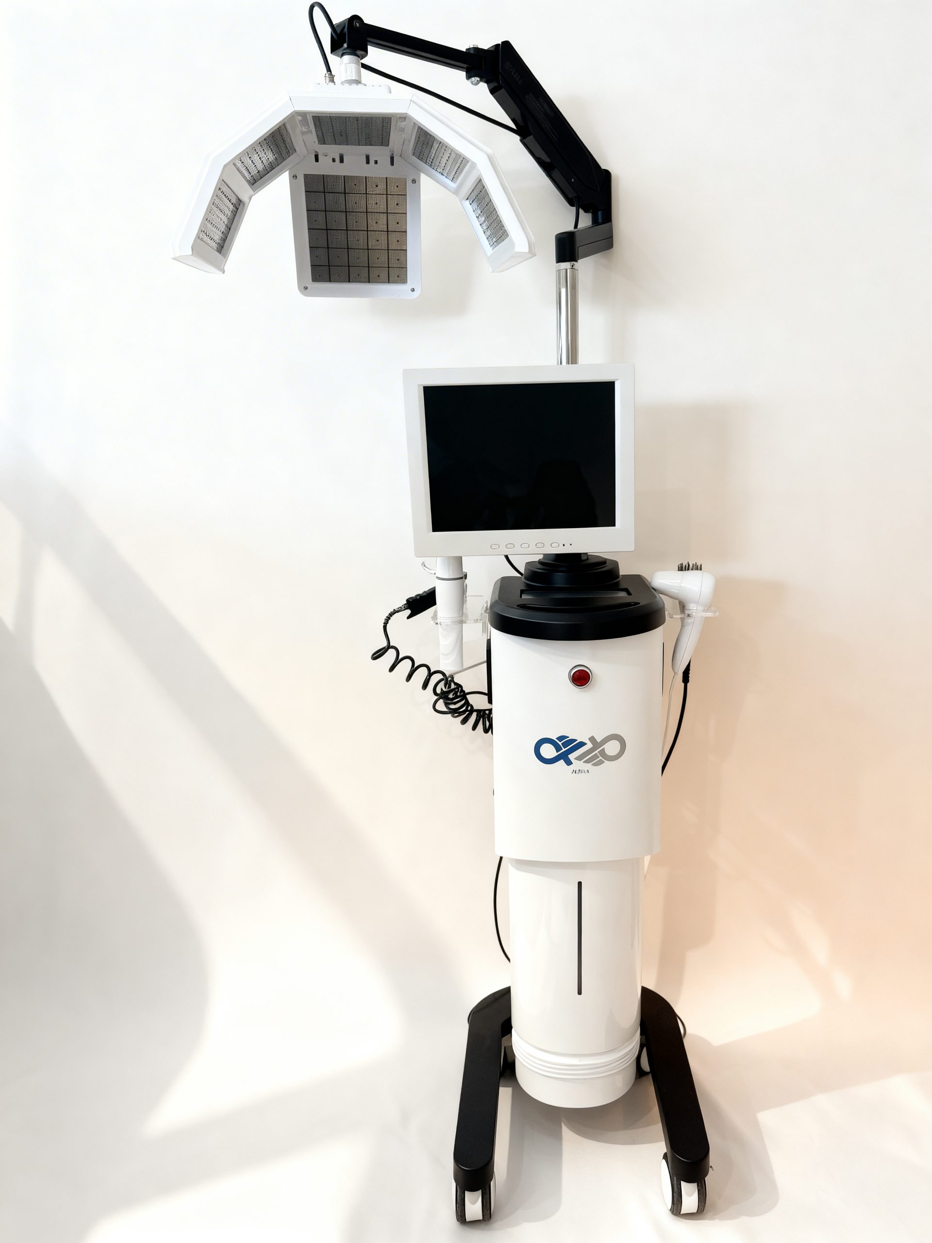 Le ALPHA Hair Therapy est un appareil professionnel 5 en 1 conçu pour lutter contre la chute de cheveux et améliorer la santé du cuir chevelu. Il associe plusieurs technologies avancées (haute fréquence, oxygène, thermothérapie, microcourants et LED rouge) pour stimuler la repousse, renforcer la fibre capillaire et traiter les déséquilibres du cuir chevelu.