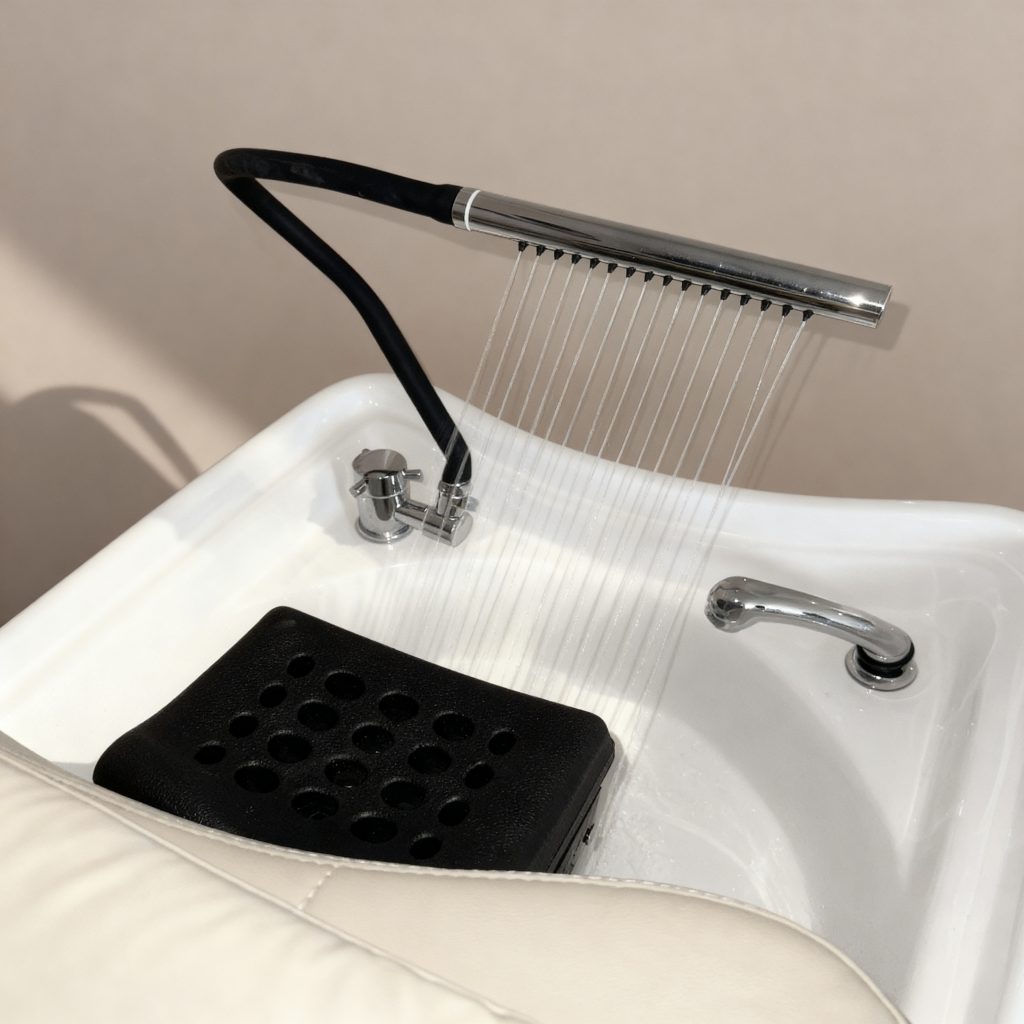 Idéal pour les instituts, salons de coiffure ou espaces bien-être souhaitant proposer une prestation Head Spa sans travaux ni aménagement spécifique.