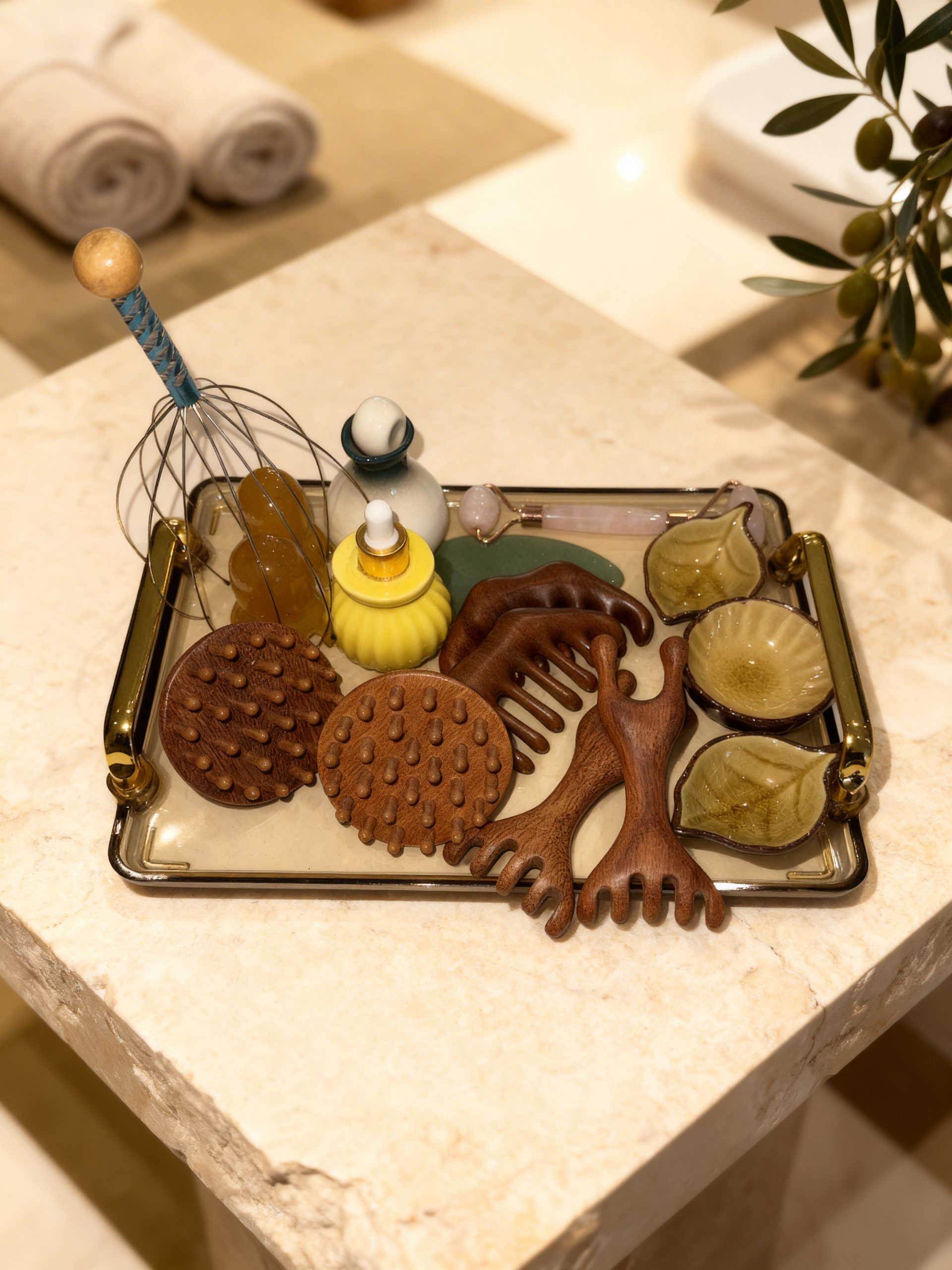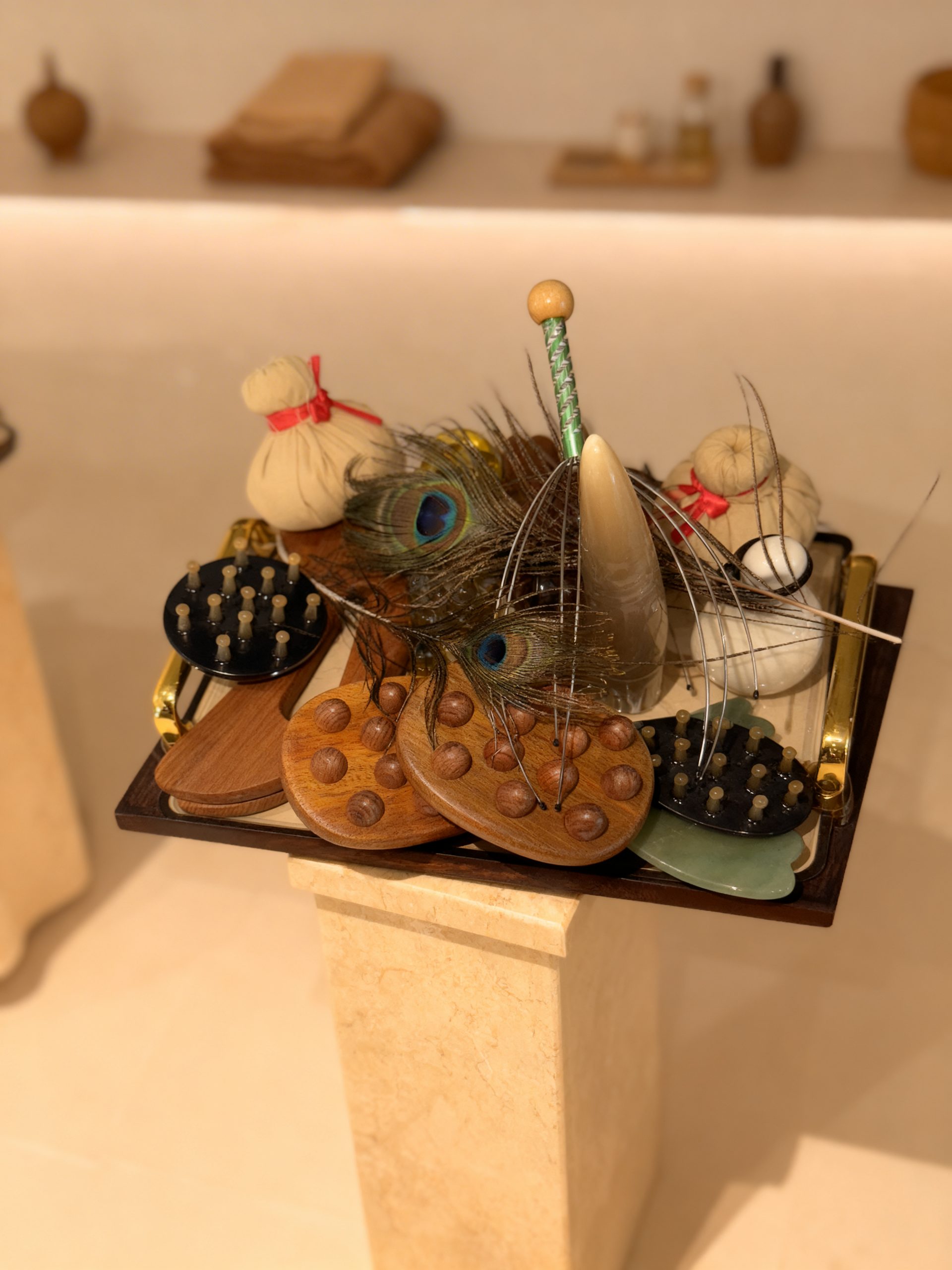Le plateau d’accessoires, composé de 12 accessoires essentiels, est parfaitement conçu pour enrichir vos protocoles Head Spa et sublimer l’expérience de vos clients.